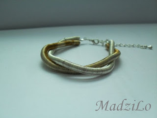 Bransoletki są wykonane z drutów posrebrzanych i mosiężnych, sprężynki zostały mocowane na linkach stalowych.